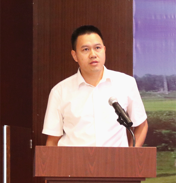 圖1:新恒通公司黨委書記、董事長賴水平在推進會上發(fā)言
