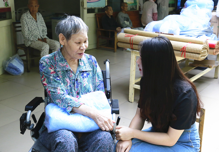 活動開展當天,來自本部的10名志愿者代表將慰問物品送到了老人身邊。護老院護工黃阿姨笑盈盈道:“你們送來的東西太實用了。入秋微涼,蚊子也還比較多,席子、毛巾被、滅蚊器都能派上用場,數量也基本滿足了當前的需求。”