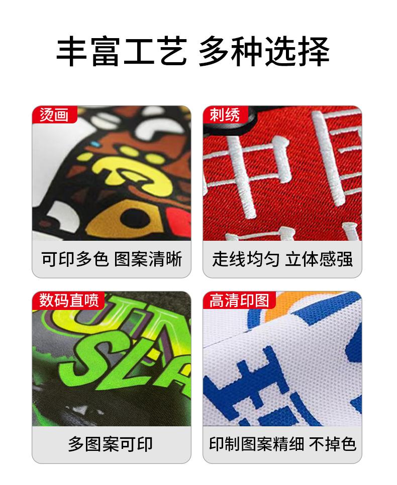 其次,印花工藝不能忽視,它直接決定衣服的顏值與耐用度。好的印花色彩鮮艷飽滿、圖案清晰細膩,不易脫落、不褪色,反復清洗后依然能保持完好。常見的優(yōu)質工藝有絲網印、數碼直噴、立體刺繡,可根據需求選擇:絲網印適合大批量定制,性價比高;數碼直噴適合復雜圖案,還原度高;立體刺繡質感突出,顯高端大氣,能更好地呈現LOGO或文化圖案的細節(jié)。