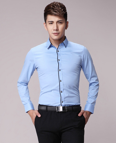 淺藍(lán)色 我們之所以把工作服這種顏色擺在第一位,是因?yàn)闇\藍(lán)色在襯衫上得到了最廣泛的應(yīng)用.這種顏色的襯衫不僅能夠和公務(wù)裝相搭配,而且也能和牛仔褲,絲光卡其布褲子或者燈心絨褲子以及幾乎各種各樣的領(lǐng)帶相搭配.這種顏色還能使各種膚色看起來更好看。